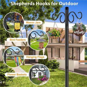 🧿[versatile and durable] Shepards Hooks for Outdoor for outdoor enthusiasts! Whether you're looking to hang your favorite bird feeder or a beautiful flower basket, our Shepherd Hook ensures that your outdoor space stays organized and clutter-free. With its sturdy construction and sleek design, our hook can withstand harsh weather conditions and will hold the weight of your hanging bird feeders and baskets securely.. Get ready to transform your outdoor space with our Shepherd Hook!