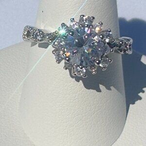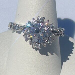 Adjustable Silver Ring W/ 2.0 Ct Diamond Simulate & Moissanite Elegant