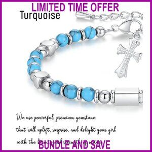 Brand new and in flawless condition — this delicate gemstone cross bracelet is a meaningful and stylish symbol of faith, perfect for everyday wear or as a thoughtful gift for any special occasion. The handcrafted design combines sparkling turquoise with a classic cross for a look that is both spiritual and trendy.