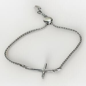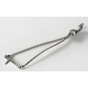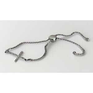 Adjustable Sterling Silver C Z Cross Bolo Bracelet - Dainty Religious Jewelry- 6.2g total weight