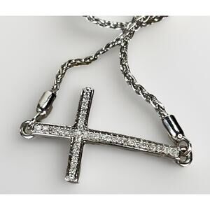 Design: Features a delicate, sideways-oriented cross charm adorned with sparkling cubic zirconia (C Z) stones, set on a sleek chain.