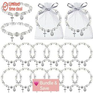 Adjustable Stretch Rosary Bracelets with Mesh Bags, Religious Jewelry Gifts