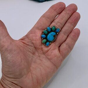 Adjustable Turquoise Sterling Half Cluster Ring Geraldine James Navajo Sz 7 J809