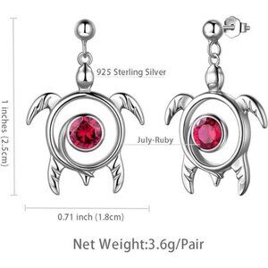 - **Design**: Features a detailed sea turtle shape with a central red stone surrounded by an elegant silver frame.