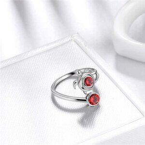 - **Material**: Crafted from sterling silver, marked with "S925" for authenticity, and adorned with vibrant red cubic zirconia stones.
