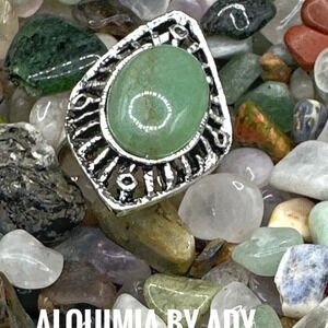 Adjustable Victorian Celtic cocktail vintage silver gem ring Aventurine