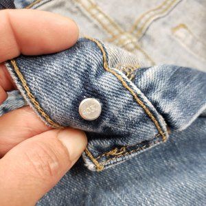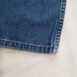 Jeans are preowned, used. No distressing or freying. No rips, tears, snags, or holes. Does have a beginning spot at inner ankle seam. Some mild fading & discoloration on thigh areas. All blemishes are shown & can be viewed in photos.