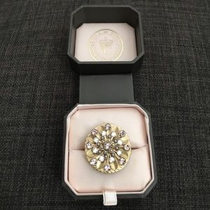 Ring can be adjusted to fit. The bottom of the ring part is slightly tarnished at the back as seen on the last picture, but hardly noticeable when worn. Flashy & cute.