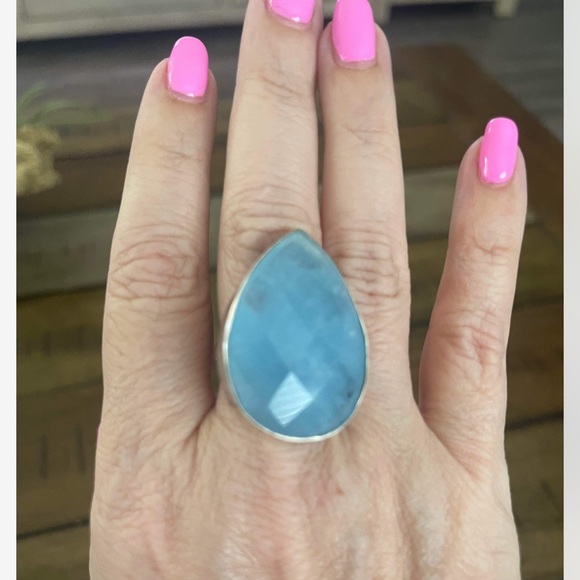 Faceted teardrop chalcedony stone. Adjustable with full silver back. Never worn.