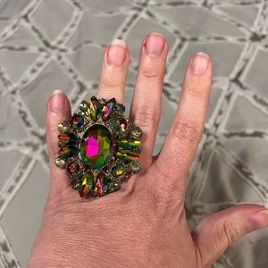 Gorgeous Adjustable statement crystal ring. Brand new without tag! Has beautiful green/pink crystals that change colors depending on the light.