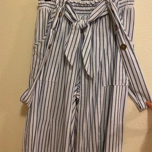 Super comfortable. Worn once. Romper. There is no filter in the main photo. My hallway doesn’t have the best lighting.