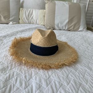 Adjustable frayed straw hat with denim detail around the brim. Perfect for any hot weather activity whether it’s the beach or a walk in the sun! Only worn once, selling it because my hat collection is at its max.