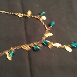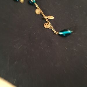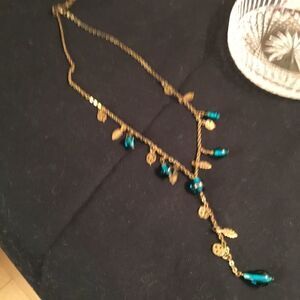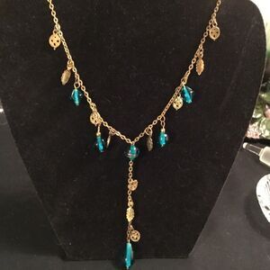 This brass tone necklace can be worn from 16” to 18” (before drop) with its adjustable extender. It features blue beads and tiny brasstone charms throughout. Drop adds 3 1/2” to overall length. $8 each or bundle 3 of same price for $15 and save.