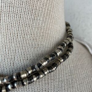 Stylish necklace featuring a flexible design to wear as a necklace, choker or bracelet. It is 32 inches in total length.