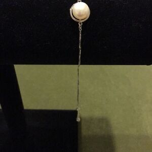 Brand new. Says Jan you one pearl and sterling silver bracelet is adjustable to fit any rest size. The end of the chain is accentuated by two small sterling silver balls.