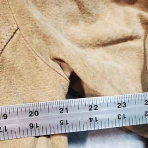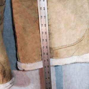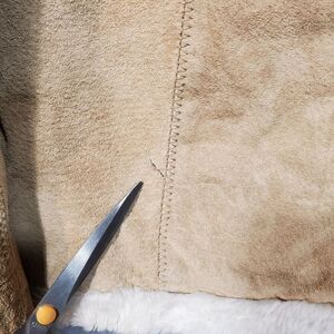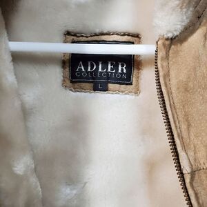 Adler Coat Womens Large Tan Suede Leather Linen Faux Fur Hooded Full Zip Vintage
