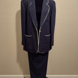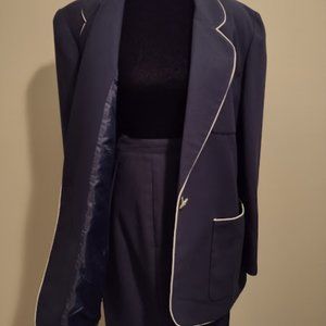 Adolfo, 2pc Pant Suit, Navy-Blue w/White Trim, 3-Pockets, Size-14, Dry Cleaned