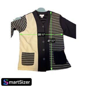 • Tags: Adolfo jacket, Black cream jacket, Color block jacket, Size M jacket, Button front jacket, V-neck jacket, Long jacket, Polyester jacket, Chic jacket, Women's jacket, Fashionable jacket, Adolfo outerwear, High-quality jacket