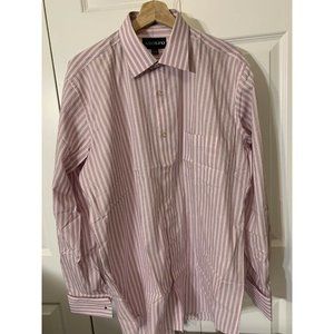 Adolfo Button Up Shirt Men's Size L 16/16 1/2 34/35 Pink Striped