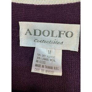 This elegantly designed cardigan from Adolfo Collectibles combines comfort with style. Crafted from a blend of wool and acrylic, it features intricate embroidery and wooden button closure. Its purple hue adds a refined touch to any ensemble.