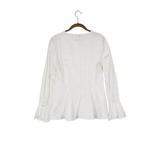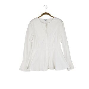 Adolfo Dominguez Button Up Fitted Top Long Sleeve White Peplum Size 42 US 8