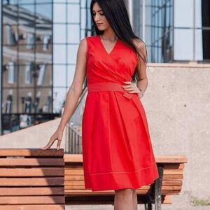 Adolfo Dominguez Red Belted Sleeveless Dress Size 8