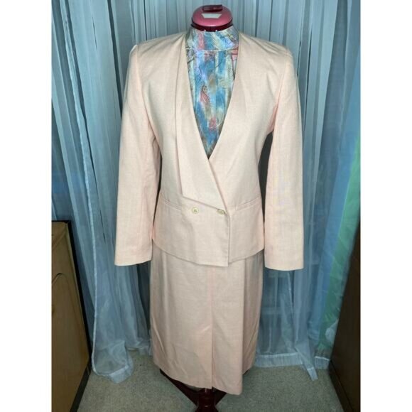 Adolfo Esprit suit mock neck blouse vintage 1980s pink