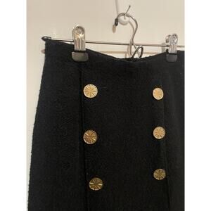 Adolfo New York Vintage Black Skirt With Gold Button Details Wool
