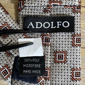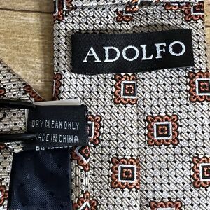 The Adolfo One Size Mens Tie in Beige is a classic and designer accessory for men. Made from a silk blend polyester material, this tie features a timeless American and classic theme. With a length of 56 and an adjustable fit, this elegant tie is perfect for adding a touch of sophistication to any outfit. The Adolfo brand ensures high quality and style for the modern gentleman. Made in China, this one-piece tie is a versatile addition to any man's collection.
