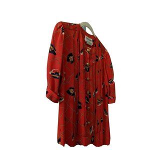 Adolfo Red Nautical Dress Gold Buttons Size L-XL Pleated Vintage Design