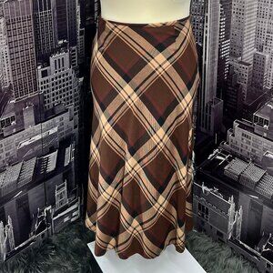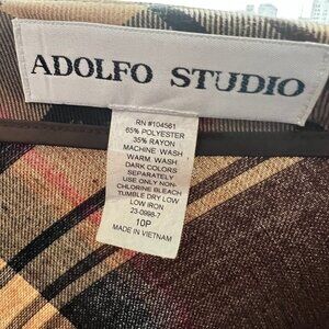 This brown and tan Adolfo Studio plaid skirt is in excellent used condition and is a size 10P. It comes from a smoke free / pet friendly home.