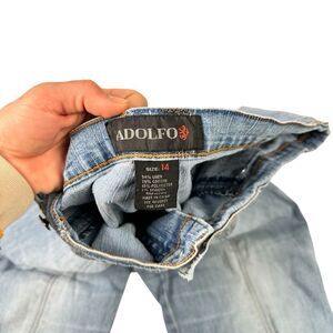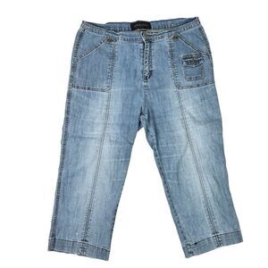 Adolfo Womens Capri Linen Light Blue Pants Jeans Size 14