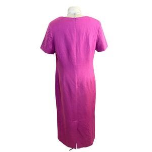 Beautiful linen blend sheath dress by Adolofo Studio, size 14W. Short sleeves, round neck, back zip. Hot pink. Lined.