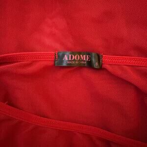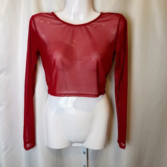 Adome Red Sheer Mesh Crop Top Long Sleeve Shirt Y2K Rave Clubwear Festival Small