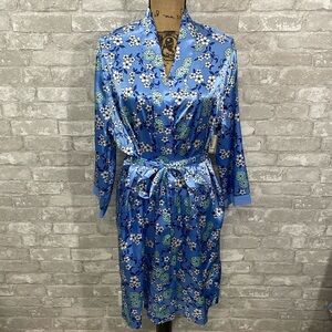 Adonna Blue Floral robe NEW WITH TAGS Inside modesty tie Belt loops and self tie sash