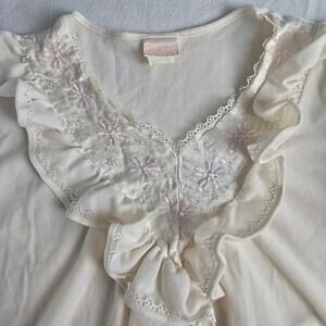 Good Condition, Adonna, Nylon Poly Blend Midi Ivory Nightgown Dress, Ruffled Floral Detail, Large