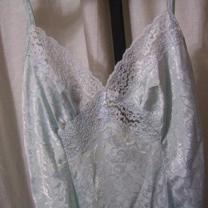 Adonna Light Aqua Green Jacquard Print Chemise Nightgown NWOT Pristine, Bust approx 36", Length approx 34", 100 Polyester. Washable