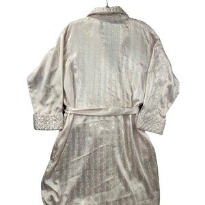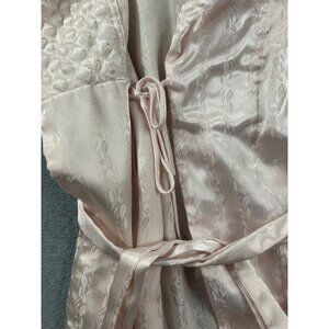 Adonna Robe Womens M Pink Satin Brocade Quilted Collar Cuffs Pockets Long Vtg