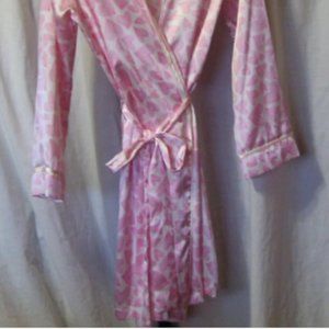 Adonna Satin Robe Pink & White Hearts NWOT Size S