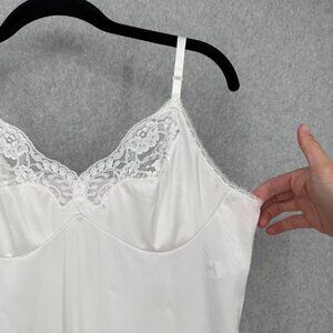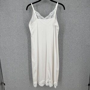 Adonna VTG Midi Lace Trim Slip Dress Size 36 Bright White Adjustable Straps EUC