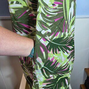Adonna Woman 1X Bright Green Pink Shortsleeve Button Up Lightweight House Dress