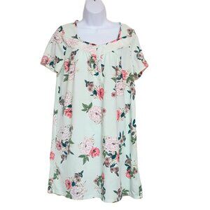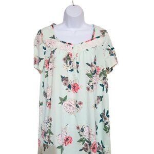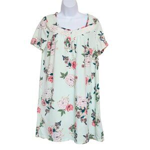 Adonna Womens Nightgown Small Soft Knit Green Floral Short Sleeve Knee Length