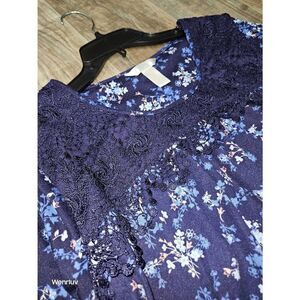 Navy blue with baby blue peachy pink and blue flower print