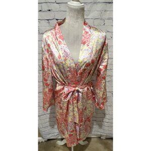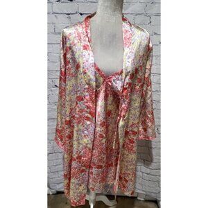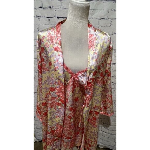 Adonna Vintage Satin Nightgown & Robe Pink Floral Silky Belted Size Large