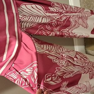 Ador Pink & White Tropical Print Two Piece Top and Pants Set