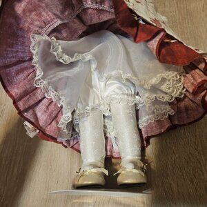 The Adora Belle Holiday 2003 Doll Marian, standing at 15 inches tall, is a special edition collector's item designed by Marie Osmond. This limited edition doll features curly red hair, green eyes, a light complexion, and removable clothes. The doll, part of the Adora Belle product line, is signed by Marie Osmond and comes in its original packaging. With a holiday theme this vintage doll is a perfect addition for collectors and fans of Marie Osmond's franchise. She was collecter opened and never played with or displayed.