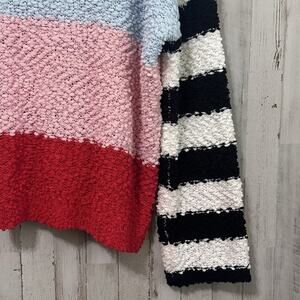 Adora Colorblock Sweater L Popcorn Knit Bell Sleeve Pullover Trendy Cozy Top