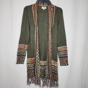 Adora Funky in Fringe Olive Cardigan Sweater Duster Jacket NEW Med/Large