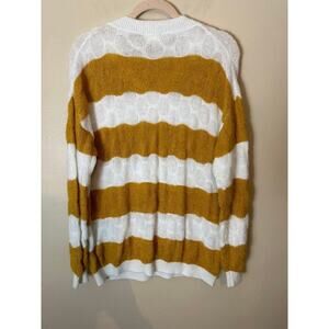 Adora Striped Oversized Lightweight Sweater Mustard & White Size Medium V-Neck