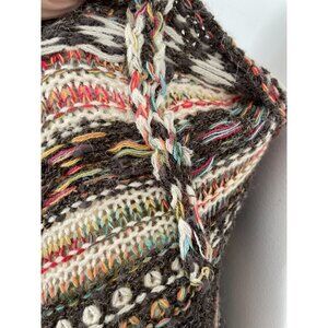 Adora Womens Aztec Boho Western chunky Knit Cardigan Sweater Fringe Hem M/L